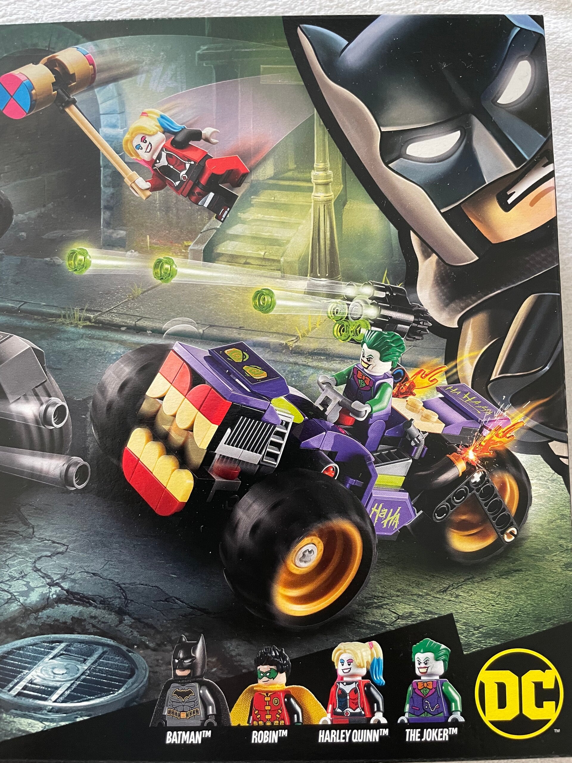 Deze stoere set met maar liefst 440 stukjes bevat de Joker met zijn monstertrike (de tanden klappen open en dicht tijdens het rijden) en poppetjes van Harley Quinn, Robin en natuurlijk Batman!