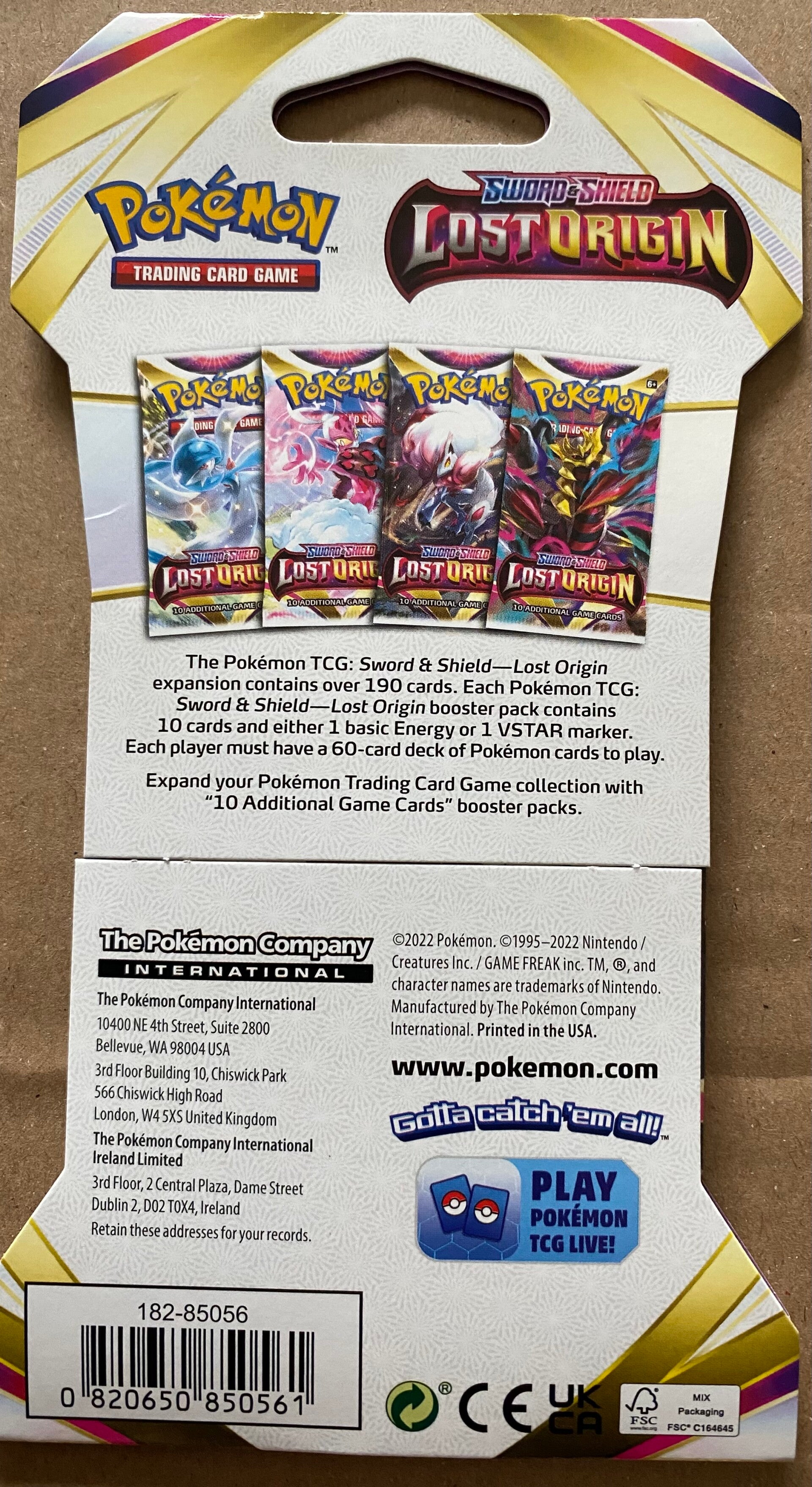 De Sword & Shield Lost Origin Sleeved Booster bevat 10 willekeurige kaarten